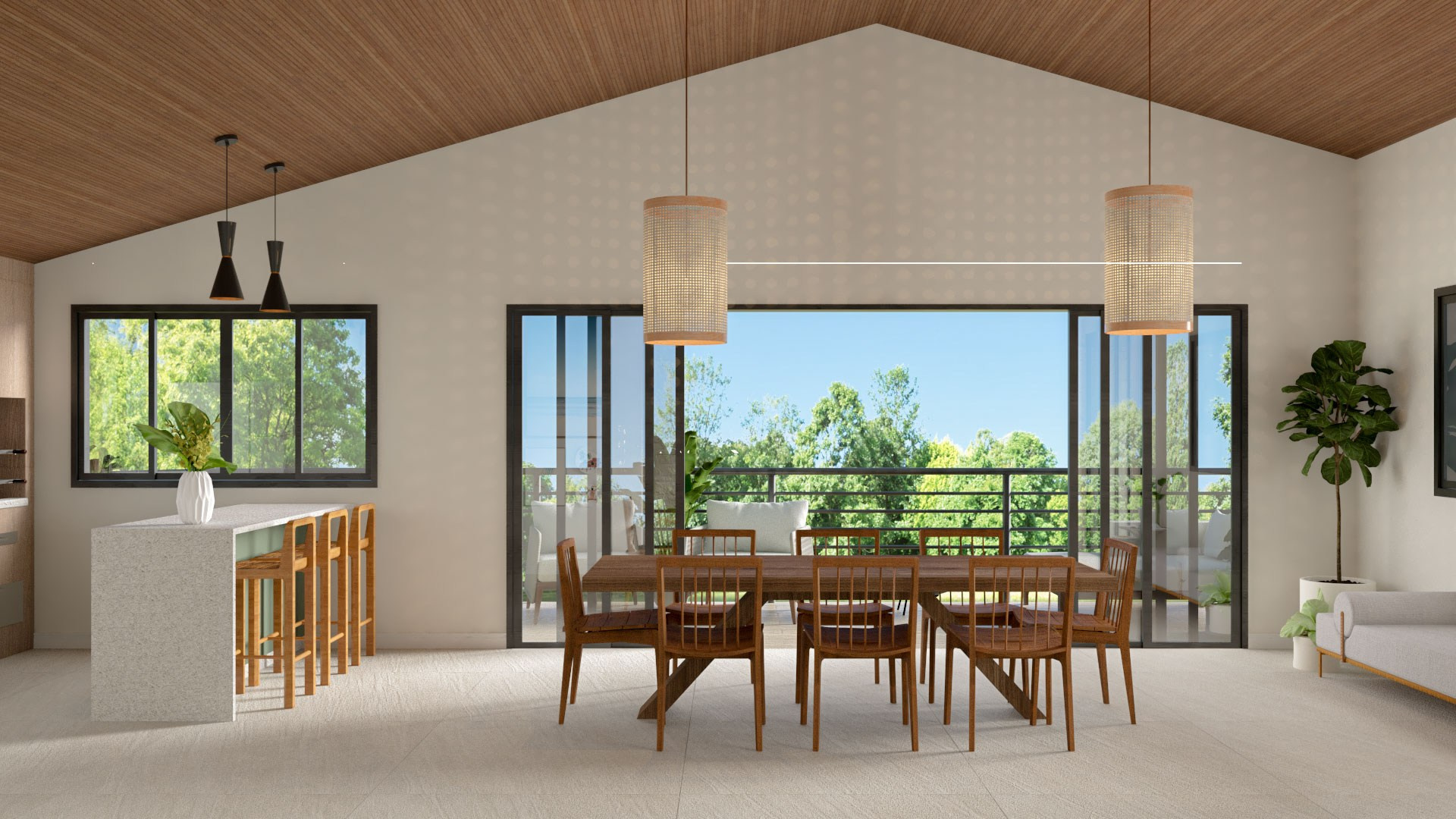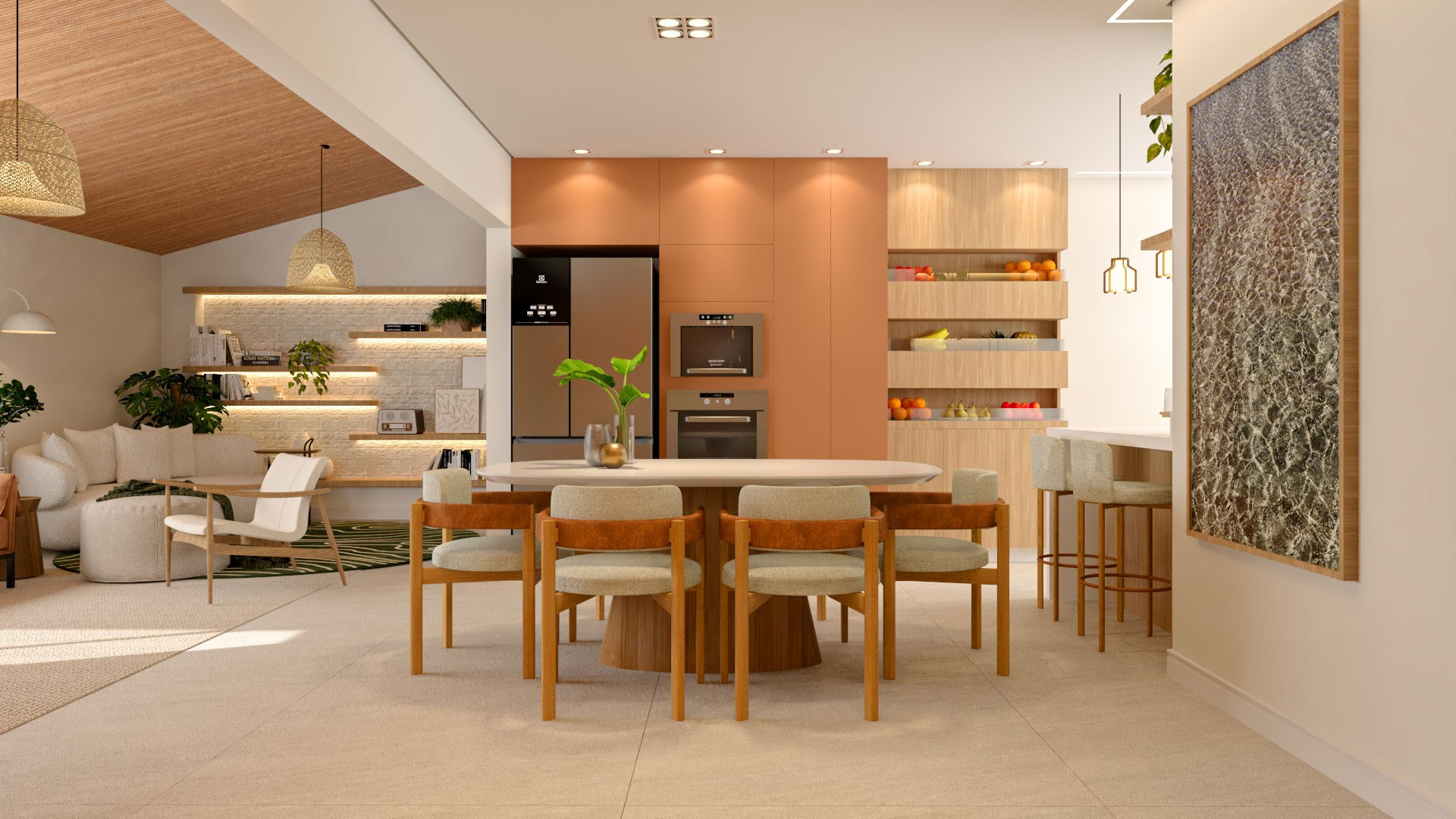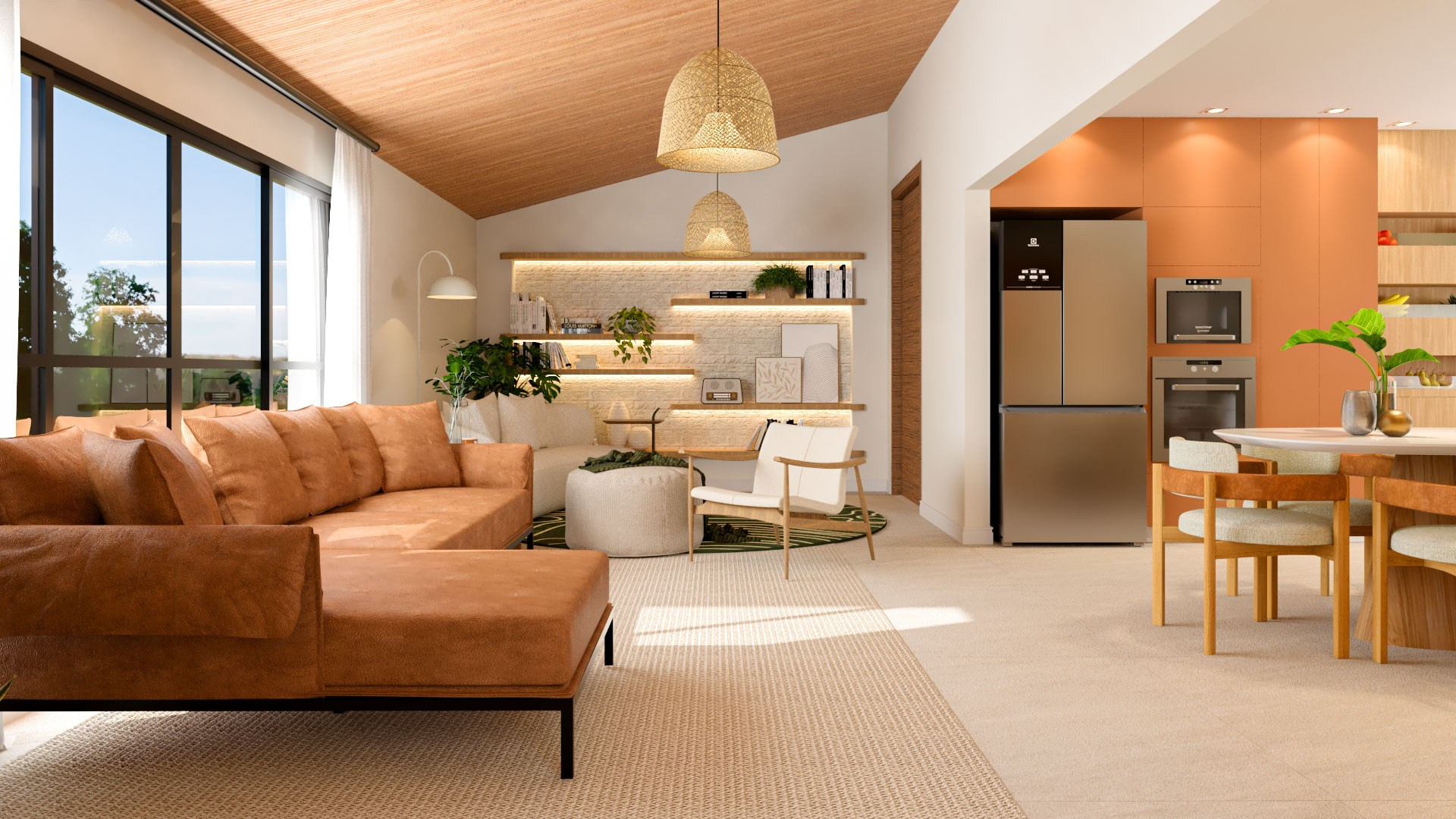 Ela tinha sido construída através dos “puxadinhos” do pai da Gabi, nisso cada ambiente tinha uma aparência e nenhuma delas ornava com o espaço de fora. Então nosso principal objetivo era modernizar o espaço interno e garantir que ele abraçasse a natureza em volta dele.