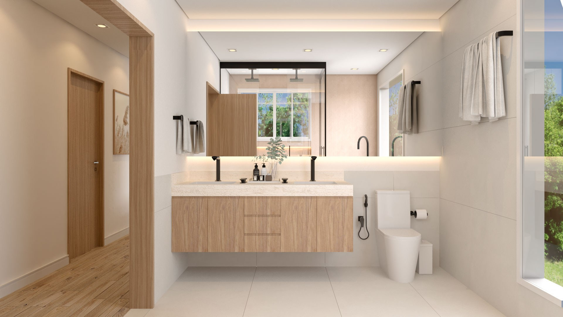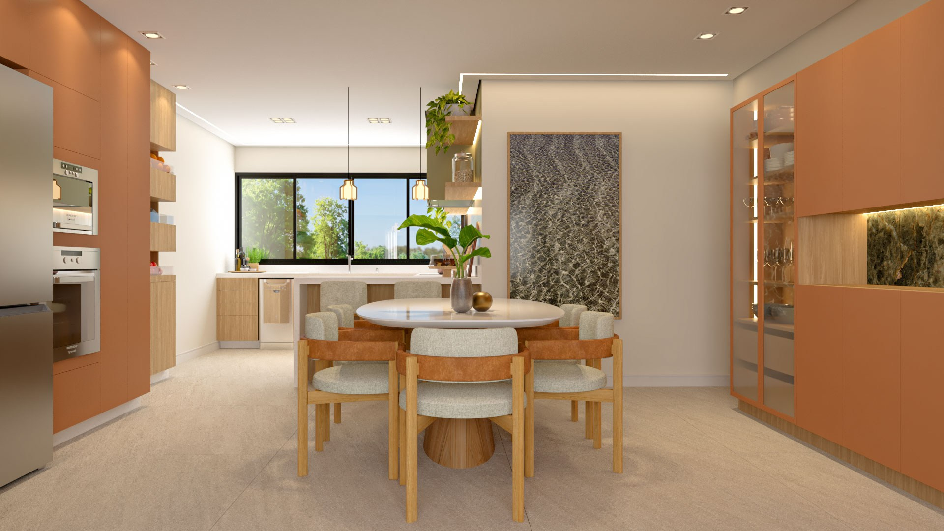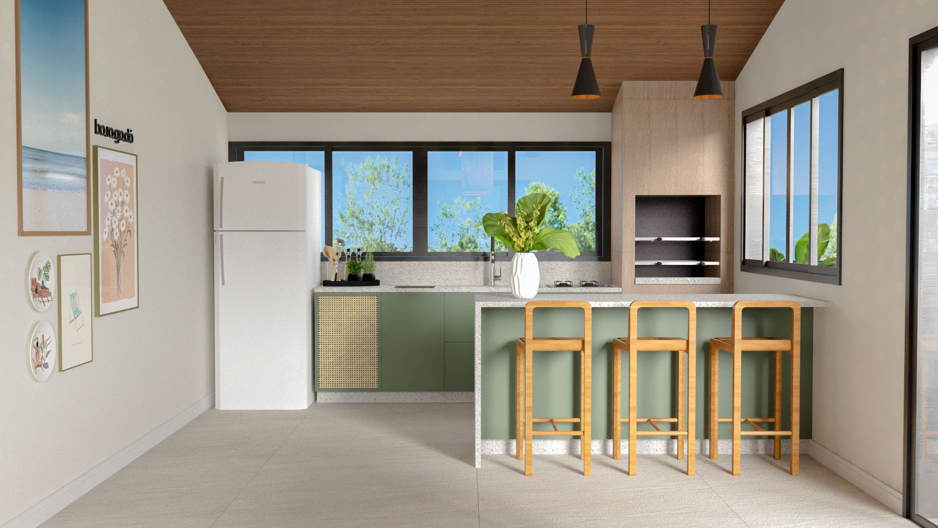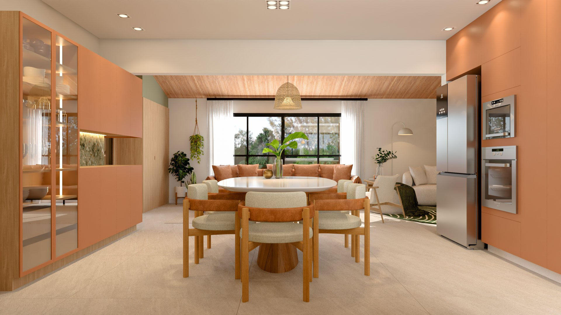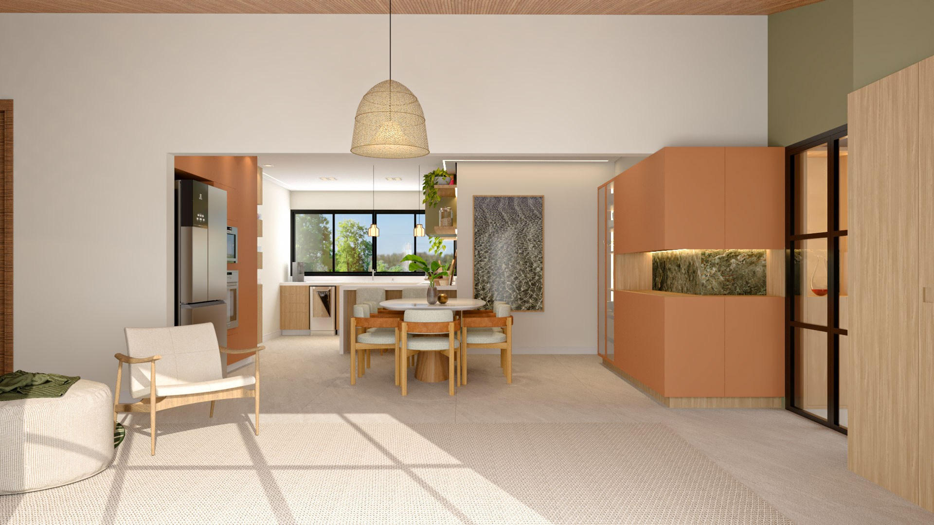 Para isso acontecer, trouxemos cores e mais claridade, o que garantiu também mais vistas para o verde. Isso, dentro da arquitetura, chamamos de “trazer o fora para dentro”, ou seja, o cenário externo torna-se parte da casa como um todo.