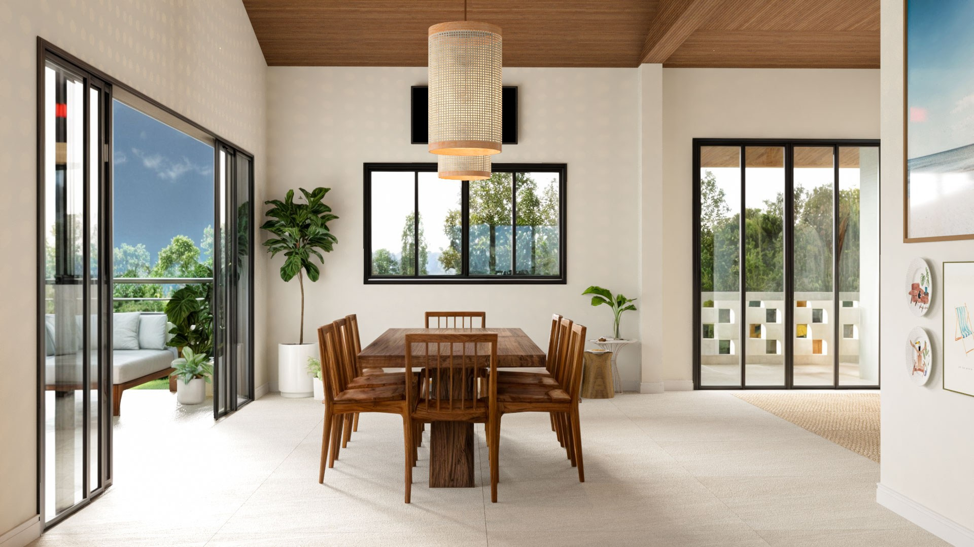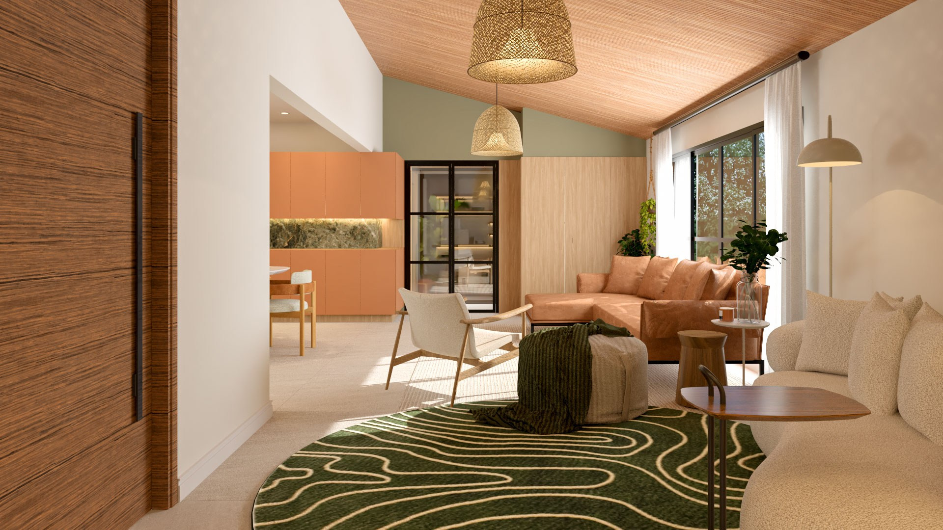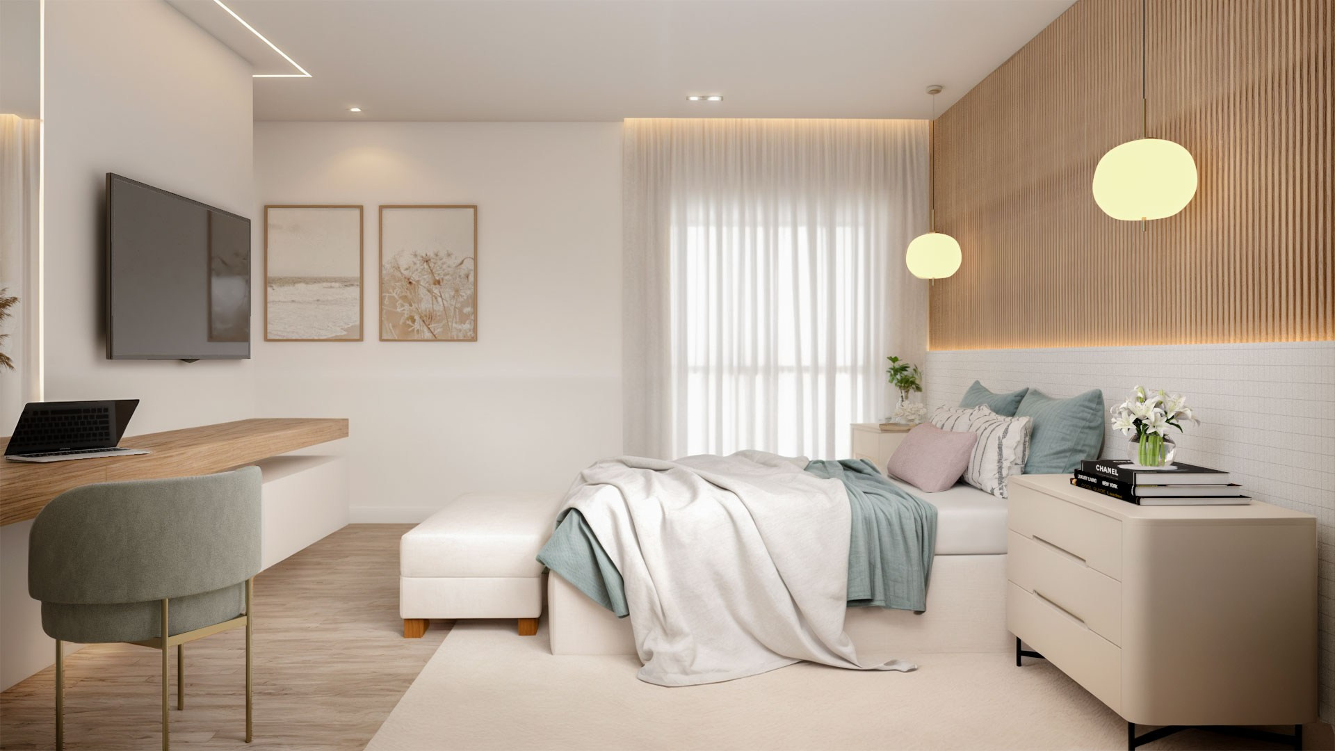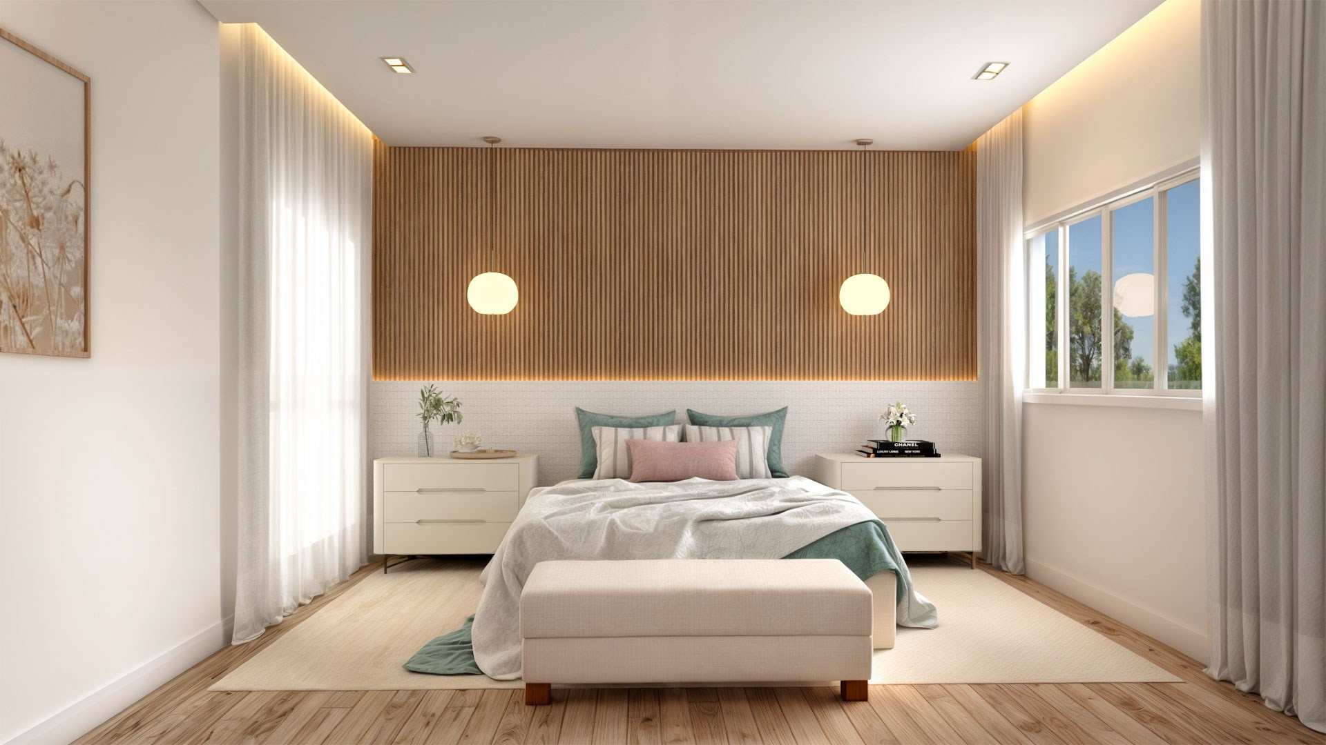 Para isso acontecer, trouxemos cores e mais claridade, o que garantiu também mais vistas para o verde. Isso, dentro da arquitetura, chamamos de “trazer o fora para dentro”, ou seja, o cenário externo torna-se parte da casa como um todo.