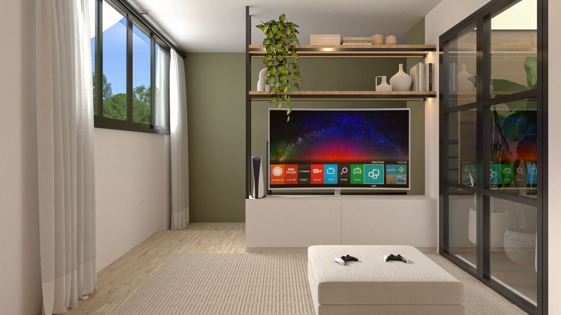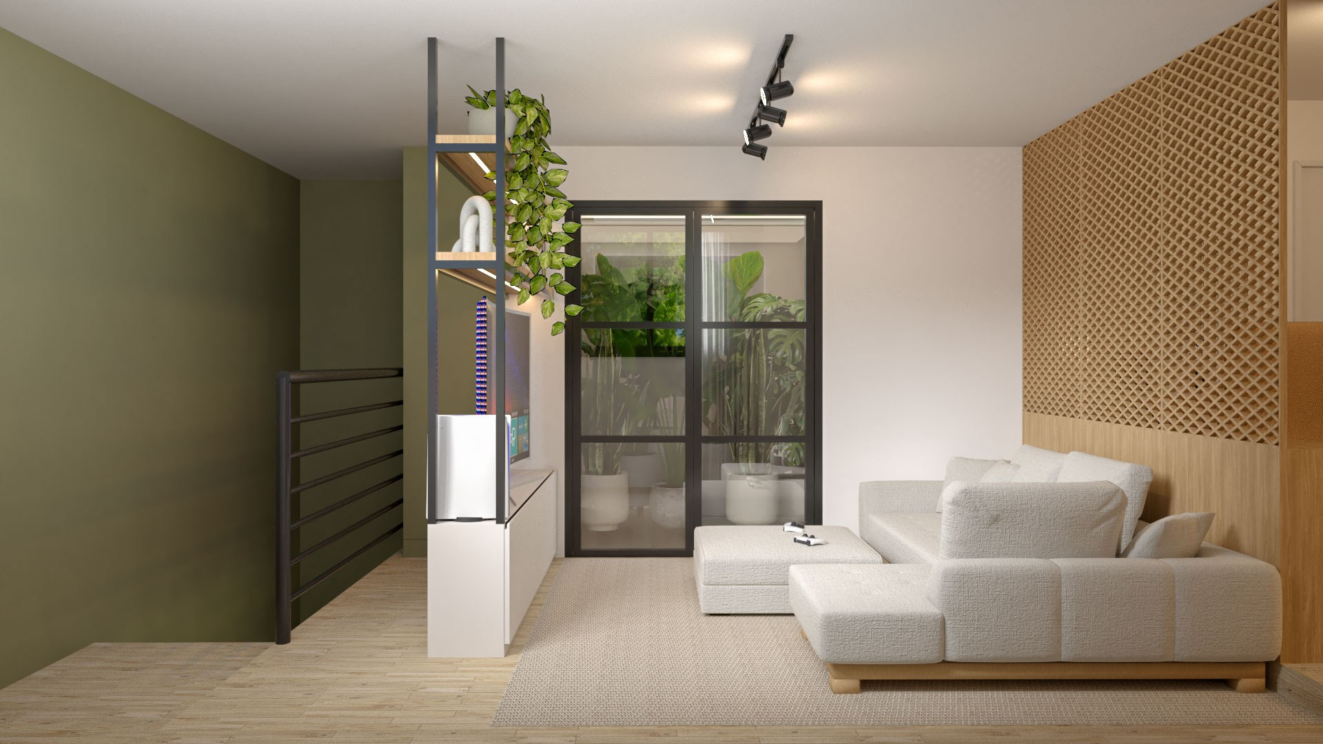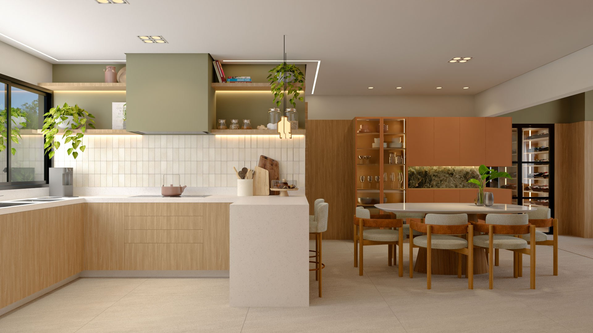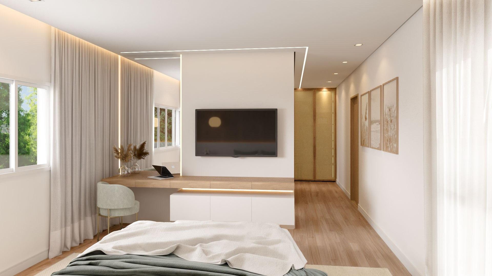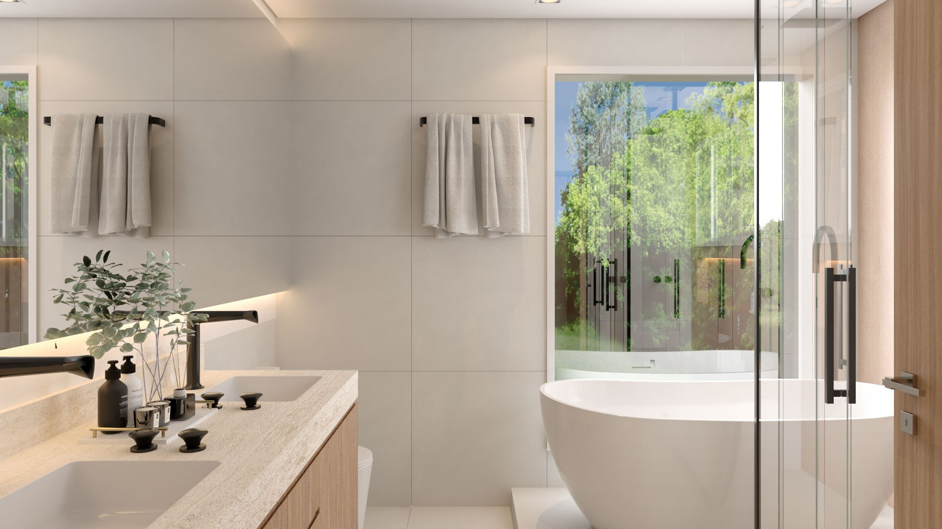 Para isso acontecer, trouxemos cores e mais claridade, o que garantiu também mais vistas para o verde. Isso, dentro da arquitetura, chamamos de “trazer o fora para dentro”, ou seja, o cenário externo torna-se parte da casa como um todo.