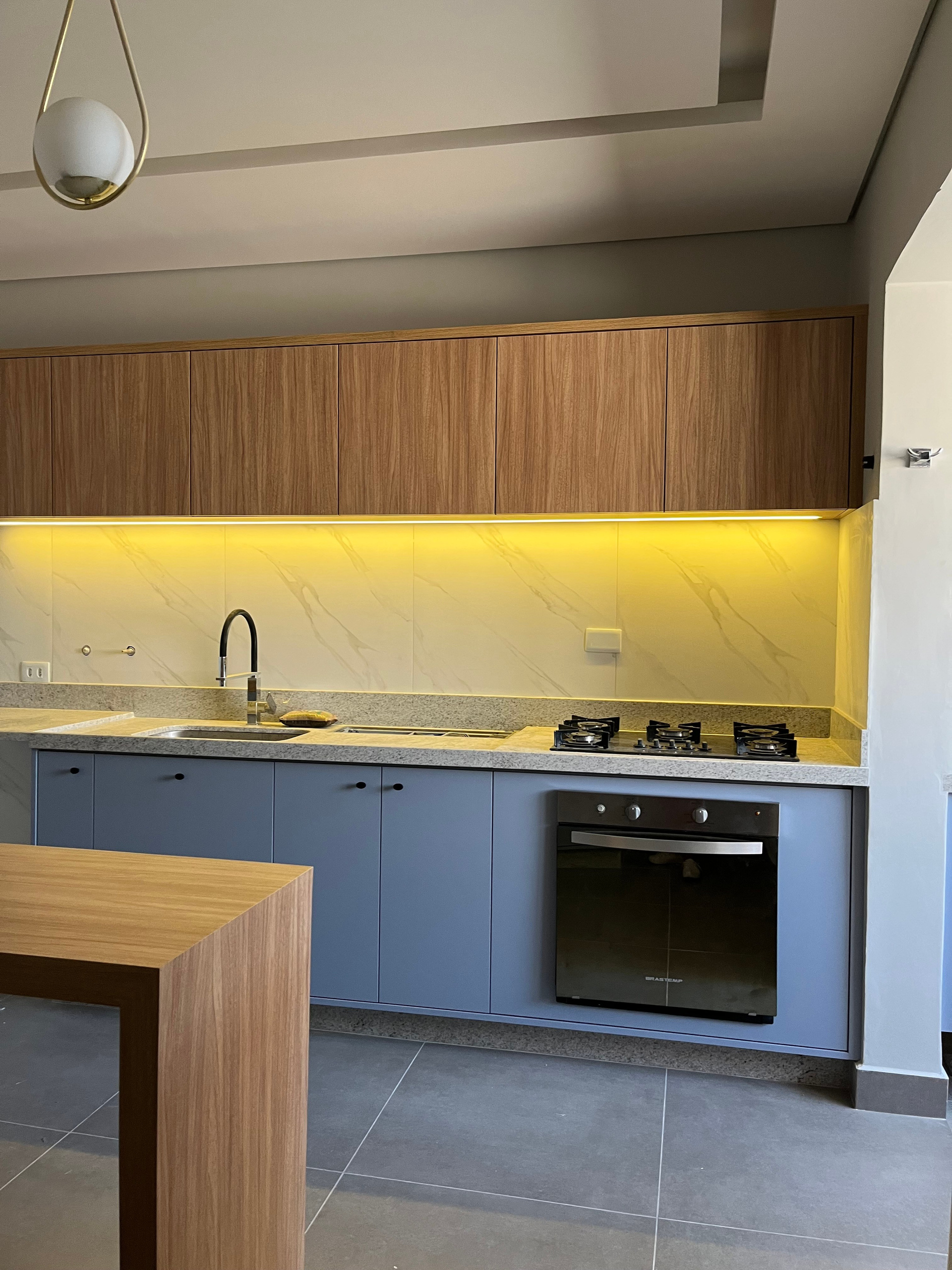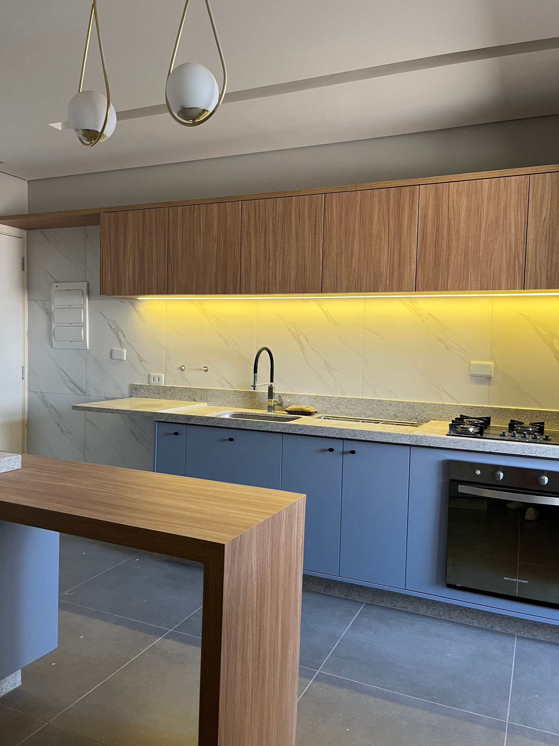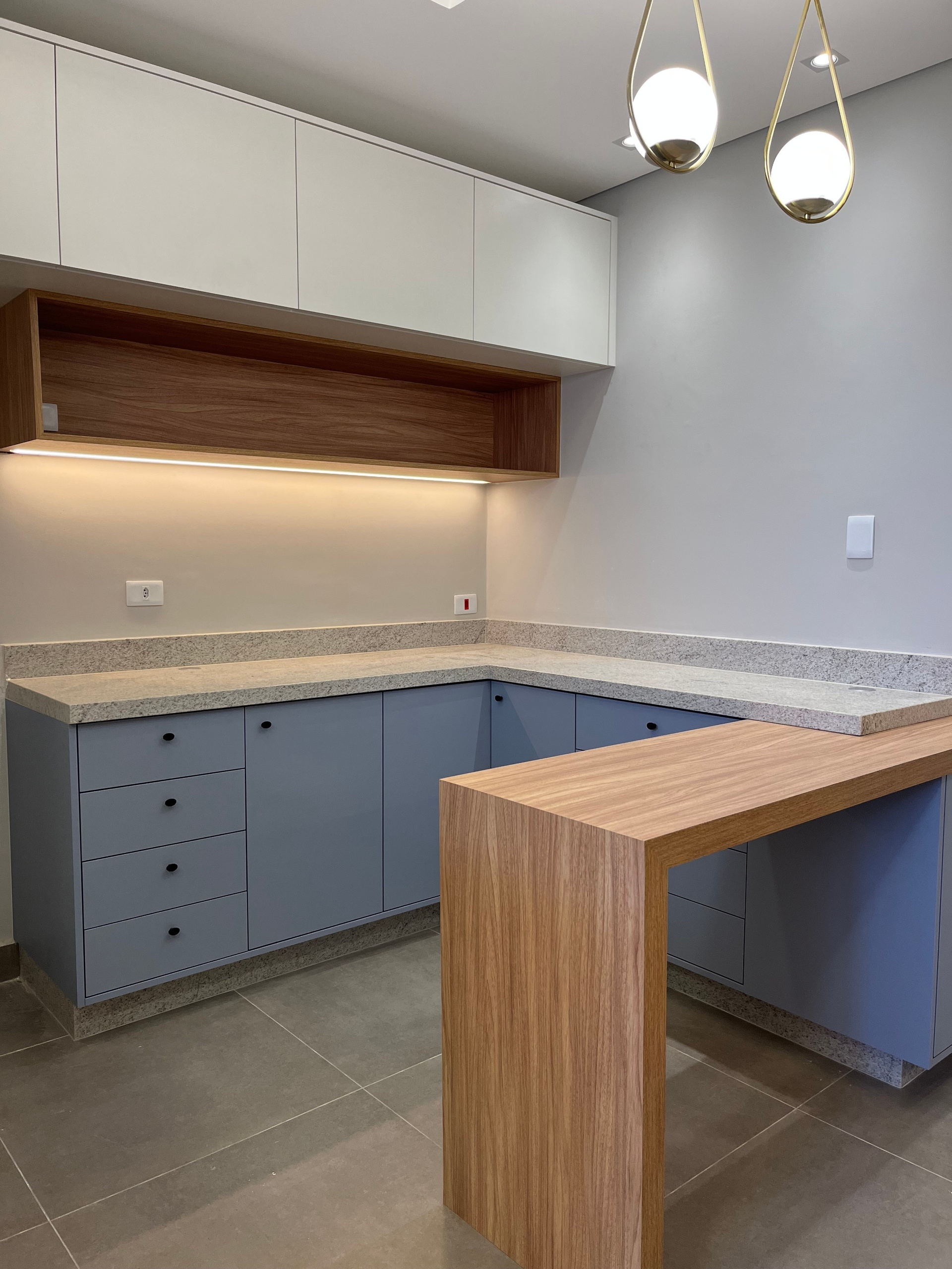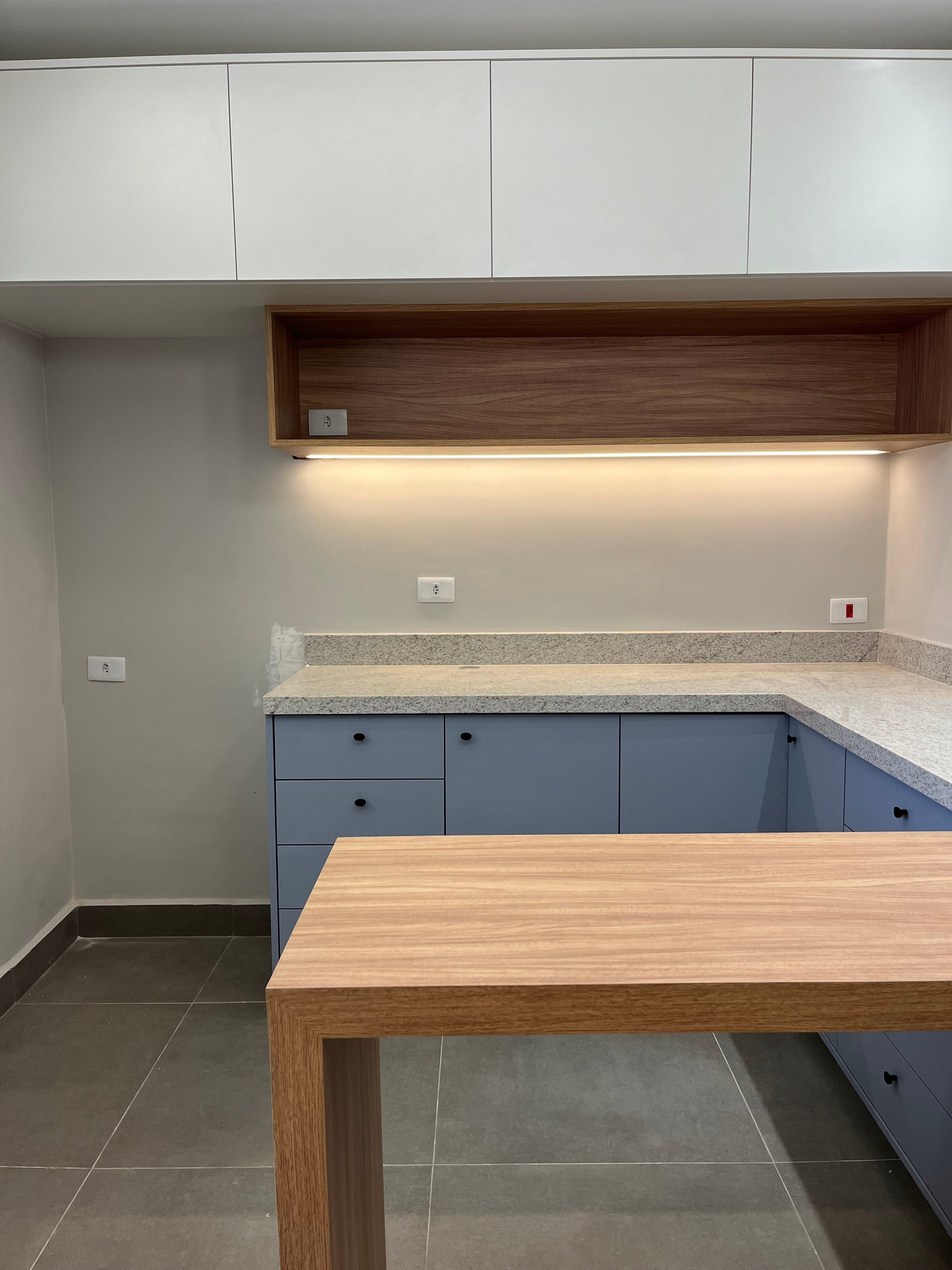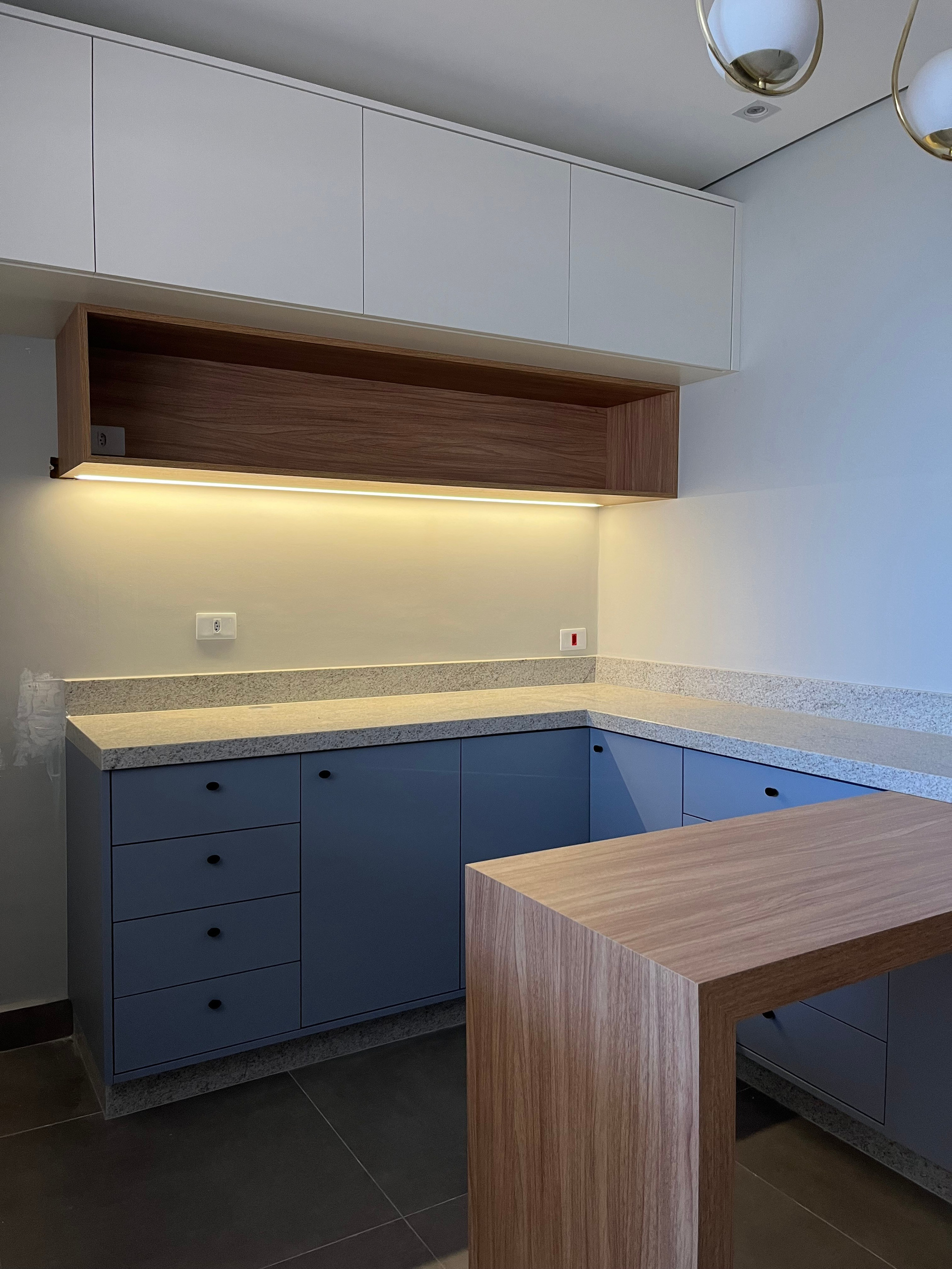 E apresentamos para eles uma cozinha com armários azuis que ganhou facilmente seus corações.