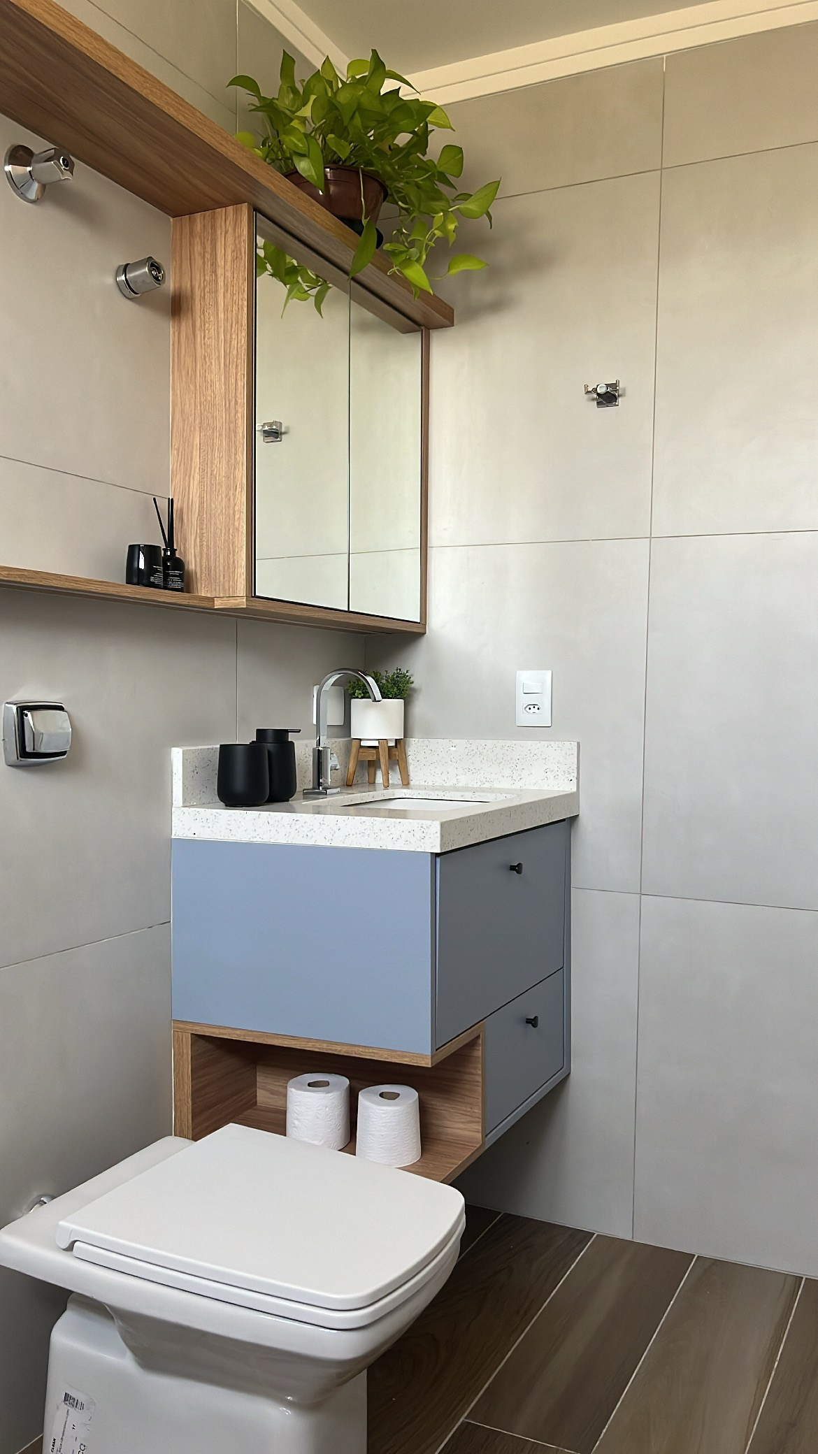 Expandimos a reforma até o banheiro e como resultado: um apartamento cheio de personalidade e que comporta os maravilhosos momentos em famílias que eles terão por ali.