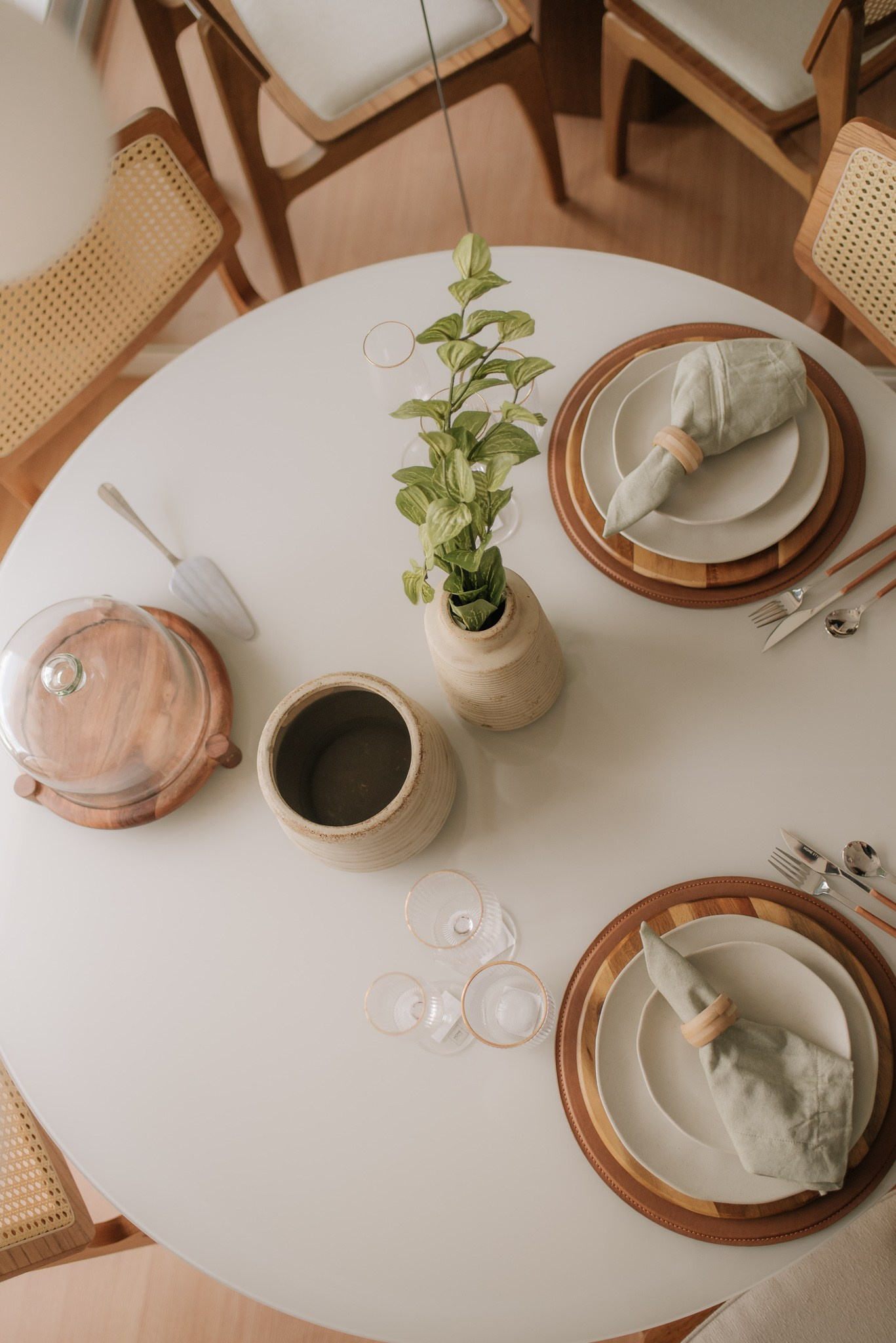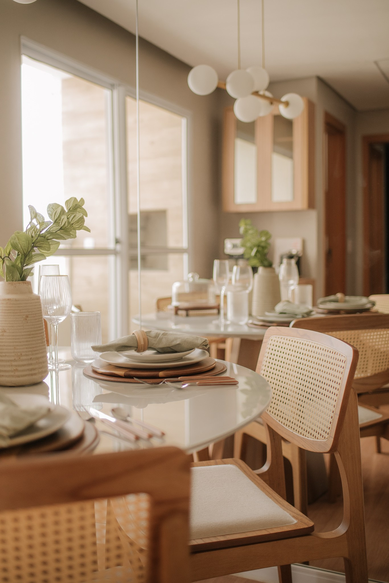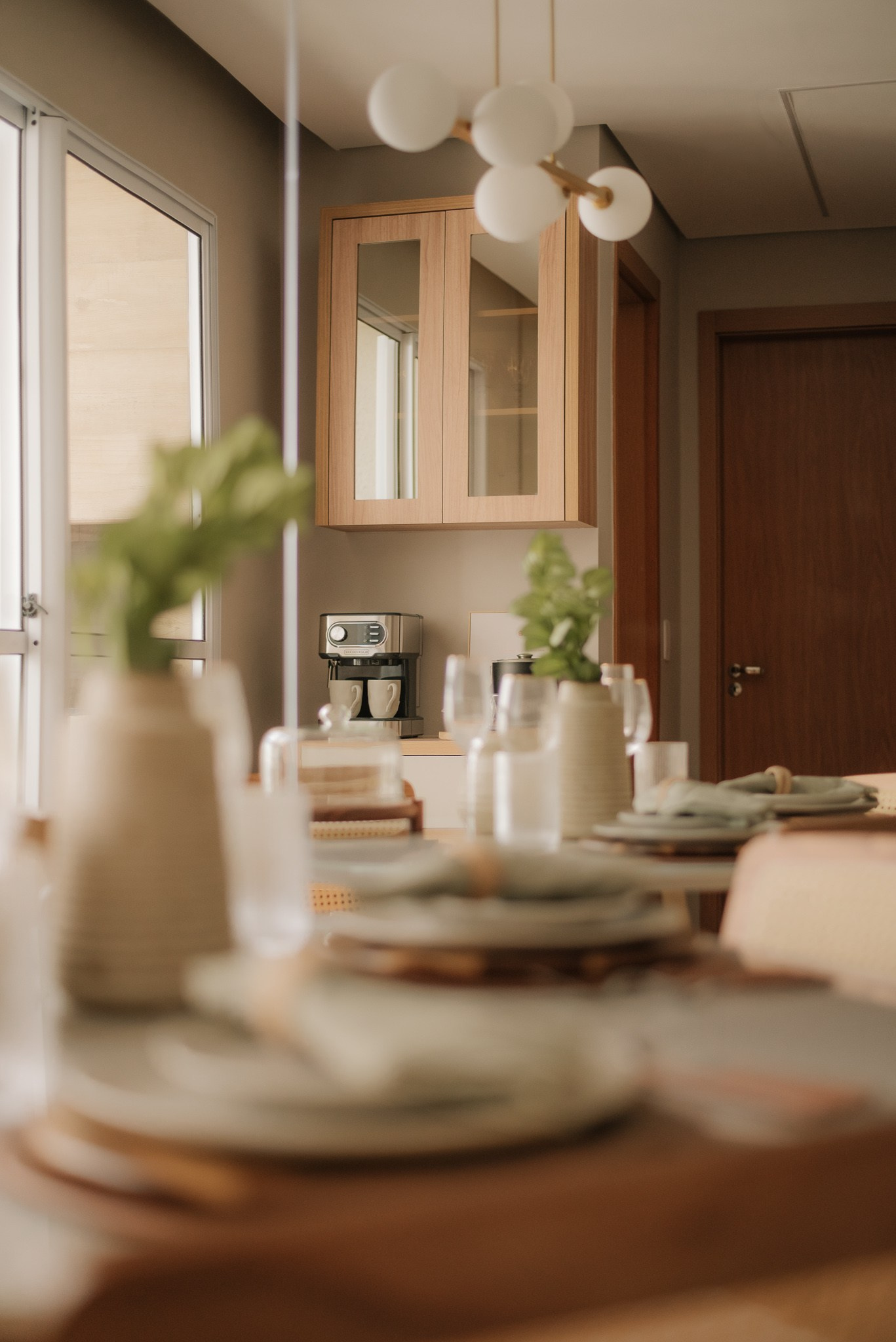 Evitamos trocas de revestimentos e barateamos o processo com escolhas estratégicas. Antes de entregar a obra, decoramos todo o espaço com utensílios da Loja Camicado para que nossos clientes entrassem e sentissem o espaço 100% pronto, com mesa posta e uma cozinha repleta e convidativa para um jantar em casa.